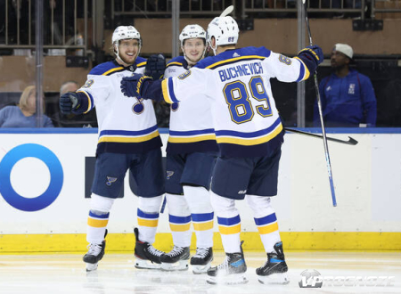 «Сент-Луис Блюз» на выезде уступил «Нью-Йорк Рейнджерс» со счётом 4:6 (1:2, 3:1, 0:3) в матче регулярного чемпионата НХЛ. Одним из лучших в составе гостей был российский левый крайний Павел Бучневич, набравший 1 очко по системе «гол + пас».