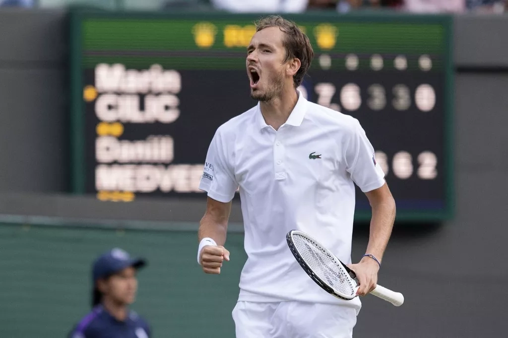 Я был спокоен, но ты ищешь неприятностей. У тебя действительно проблемы. Я с тобой не разговаривал. Я ничего не говорю. А потом ты ведёшь себя так… У тебя проблемы. Открой глаза. Включи мозг. Я знаю, что ты просто сидишь там, но думай чуть больше. Давай, дай мне энергии», — сказал Медведев судье на вышке во время перерыва.