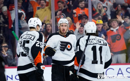 в шести из последних семи игр. Трэвис Конечны лидирует в "Флайерз" с 43 очками и 21 голом в этом сезоне.