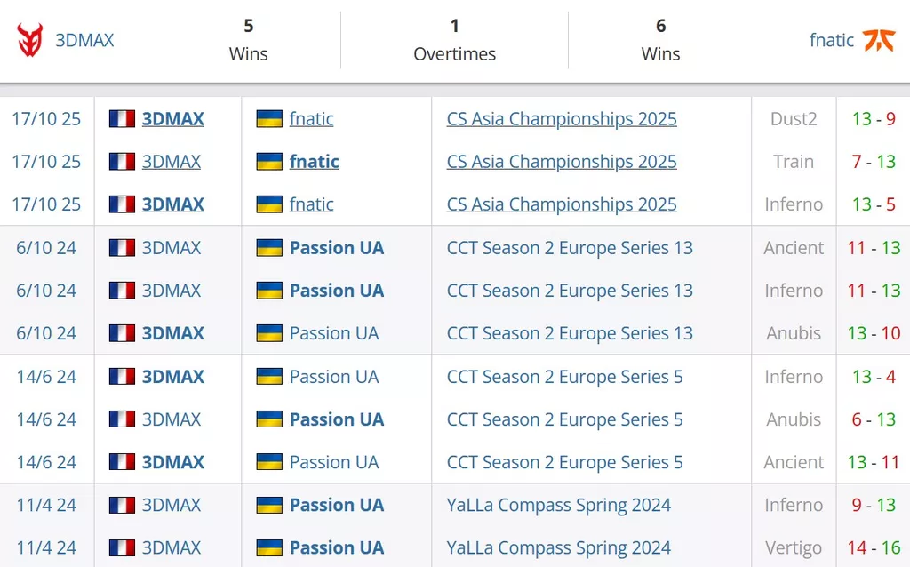 3DMAX на сегодняшний день лучшая команда Франции. В рейтинге от портала HLTV коллектив занимает 12 строчку. fnatic на данный момент занимают 26 место в мировом Табеле о Рангах, парни идут на 2 месте на Украине.