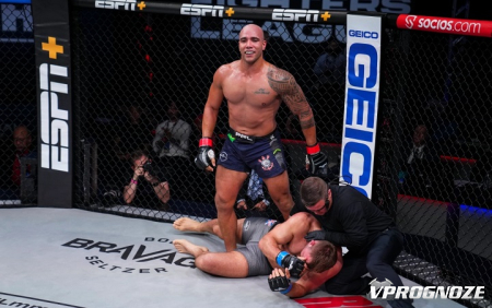 Бывший чемпион PFL, который находится достаточно долгое время в инактиве. Череда травм привела к тому, что бразилец не выходил в октагон уже полтора года. Бруно яркий рубака, но с борьбой у него проблемы. Профессиональный рекорд бойца составляет: 14 побед и 6 поражений.