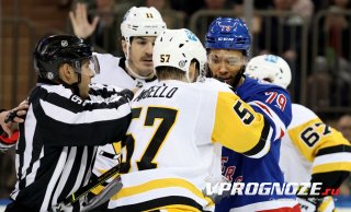 Матч регулярного чемпионата НХЛ между «Нью-Йорк Рейнджерс» и «Питтсбург Пингвинз» (3:0) завершился массовой дракой. Видео можно посмотреть здесь.