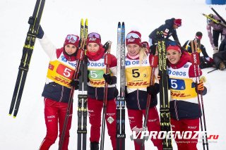 Женская национальная российская команда завоевала золото в женской эстафете, которая проходит на КМ в норвежском Лиллехаммере.
