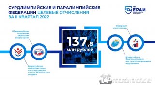 За II квартал 2022 года ЕРАИ перечислил паралимпийским и сурдлимпийским федерациям 137,8 млн рублей целевых отчислений от букмекерской деятельности. Таким образом, с начала работы Единого регулятора за 9 месяцев им направлено более 418 млн рублей.