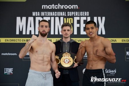 3. Шандо Мартин против Хосе Феликса (они на фото). Мартин побил Майки Гарсию в Штатах, причем по делу. Боец неплохо, но не слишком бьющий. Феликс бьет посильнее, но как боксер хуже. Скорее всего Мартин просто перебоксирует его на дистанции. Нокаута тут не жду, т.к. Хосе просто не догонит соперника, а Мартин на это сам скорее всего не будет идти. Жду все 10 раундов и победу испанца единогласным решением судей с приличным перевесом где-то 98-92