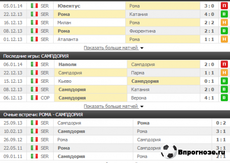 Как и писал ранее про матч , можно ещё и такую ставочку поставить(попробовать). Сампа против любого соперника 100% моменты создает, в матче против Наполи Габбьядини пушечным вистрелом в перекладину попал,а Поцци одним ударом две стойки прочесал + Едер момент запорол, в голе Роми сомневатся не приходится Смотрите последние результаты.