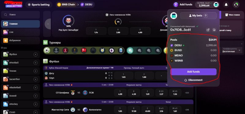 Интерфейс достаточно дружелюбный, сложностей особых нет. Линия смахивает что-то между пари матч, лига ставок ну +-. Есть переключение на русский язык. Завёл 25$ для пробы. Ставки можно ставить в 4-х токенах, на скрине указал. В моём случае 25 токенов Desu минимальная ставка, если ещё и вырастет в цене, то уже не плохо.
