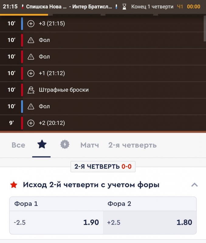 И рановато ты дернулся на 2 ч. Там еще почти минута игры и 20:12... Это баскет, могли бы и взять фору, а ты уже лупанул на следующую...