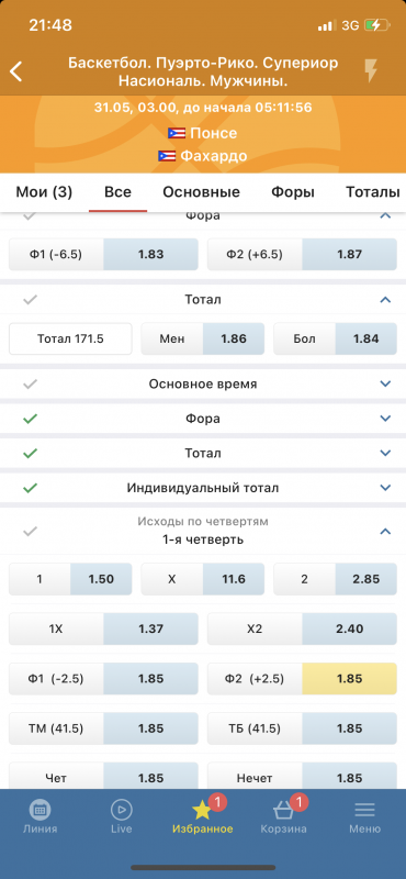 1 четверть ф1(+1.5) за 1.85