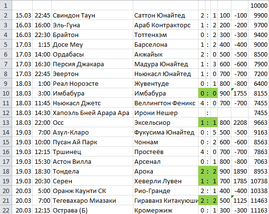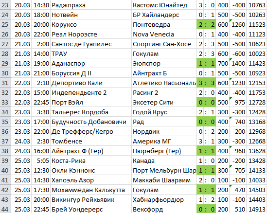 Если ставить по той стратегии, по которой я обычно ставлю, то получилось бы вот так: