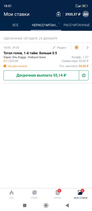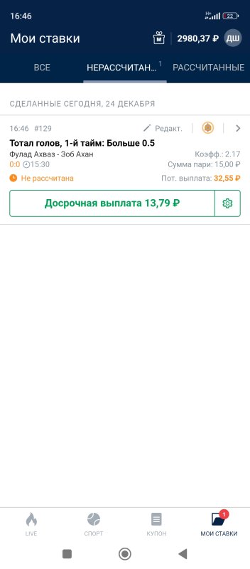 Мы тебе уже верим.Я публикую все ставки которые проставил а не то что успел.я говорю что здесь выкладываю только после того как сам проставлю...есть достаточно приграничных матчей...где в случаи небольшого даже прогруза время будет уже против меня...надеюсь ты понимаешь о чем я...