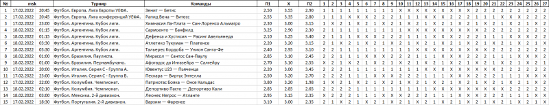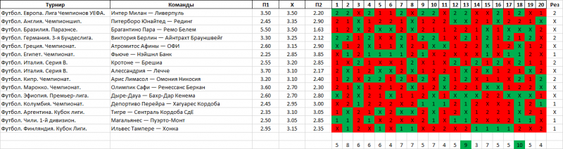 Это как раз не тупая расстановка. Примерно так и надо линовать варианты. Если начнёшь думать над исходами то тут то и будет жопэц! Потому что именно хорошо обдуманные и логичные исходы чаще всего и проваливаются.Тираж 3344. 27 вариантов по 30 виртуальных рублей. Итого 810.