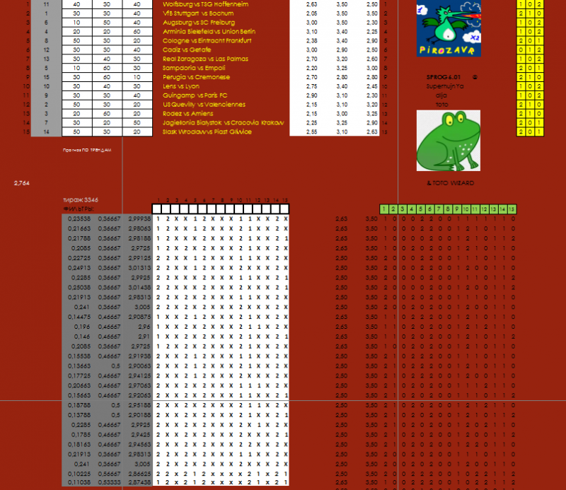 Вроде бы ничего особенного. Тираж как тираж? Но всё не так просто. Дело в том, что это был "красный" тираж. По очкам тираж набрал 47% очков. Сенсаций 6 штук. Выдача по тотализатору должна быть достаточно высокая и 14 очков никто не должен набирать. Но! Всё не так. Внизу вариант победителя и видна очень чёткая картина: чувак попал в тренд и очень ровные красивые числа попаданий: 16 девяток, 16 десяток, 15 по 11, 5 по 13, 1 набрал 14 очков.
