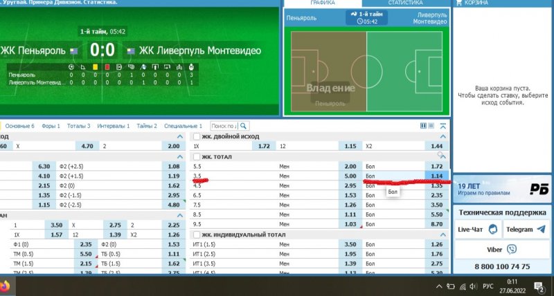 Уругвай. 00:00. Пеньяроль - Ливерпуль , удаление будет - 4.2 , 10 000 р